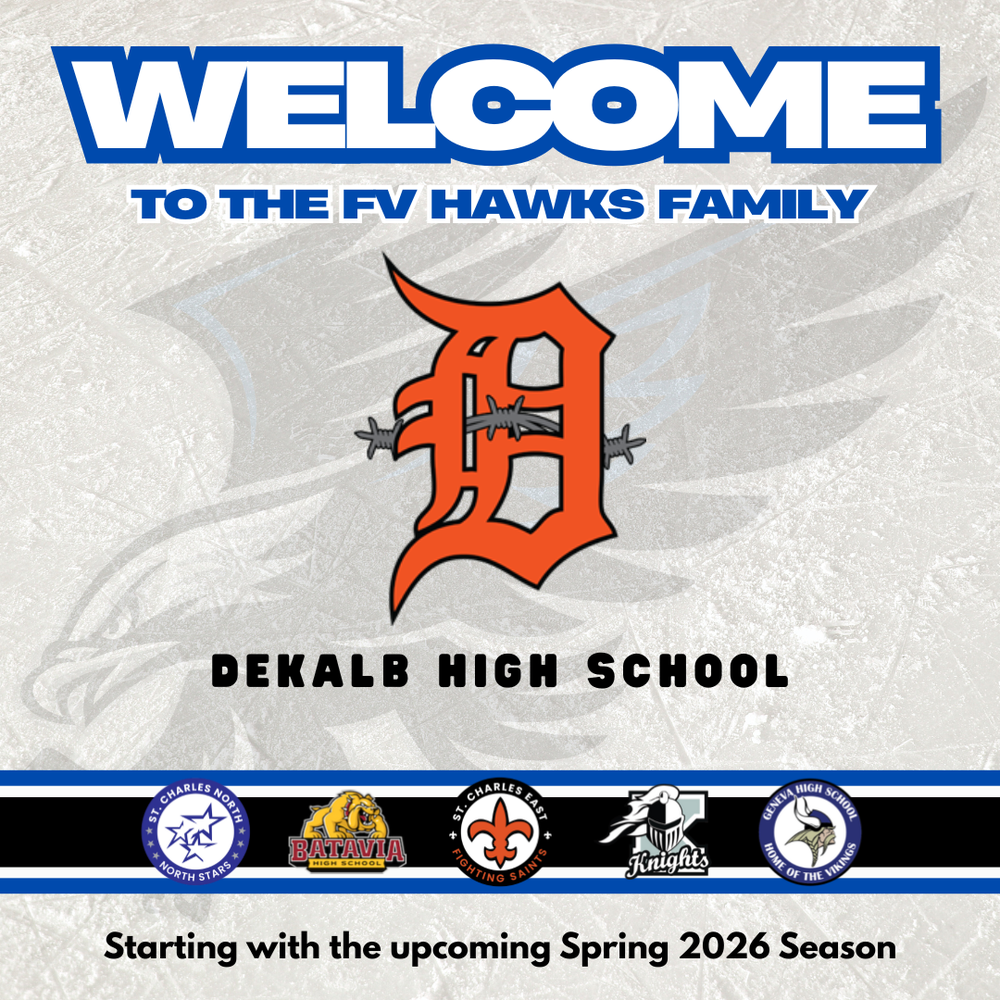 We’re excited to announce that DeKalb High School is now officially part of the Fox Valley Hawks Hockey Club! That means DeKalb students can officially hit the ice, compete at a high level, and be part of the Hawks hockey family starting with the Spring 2026 Season.